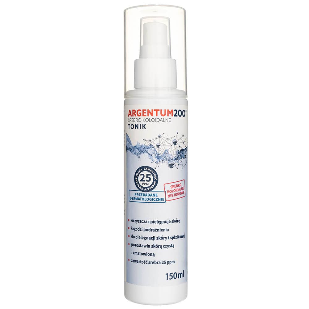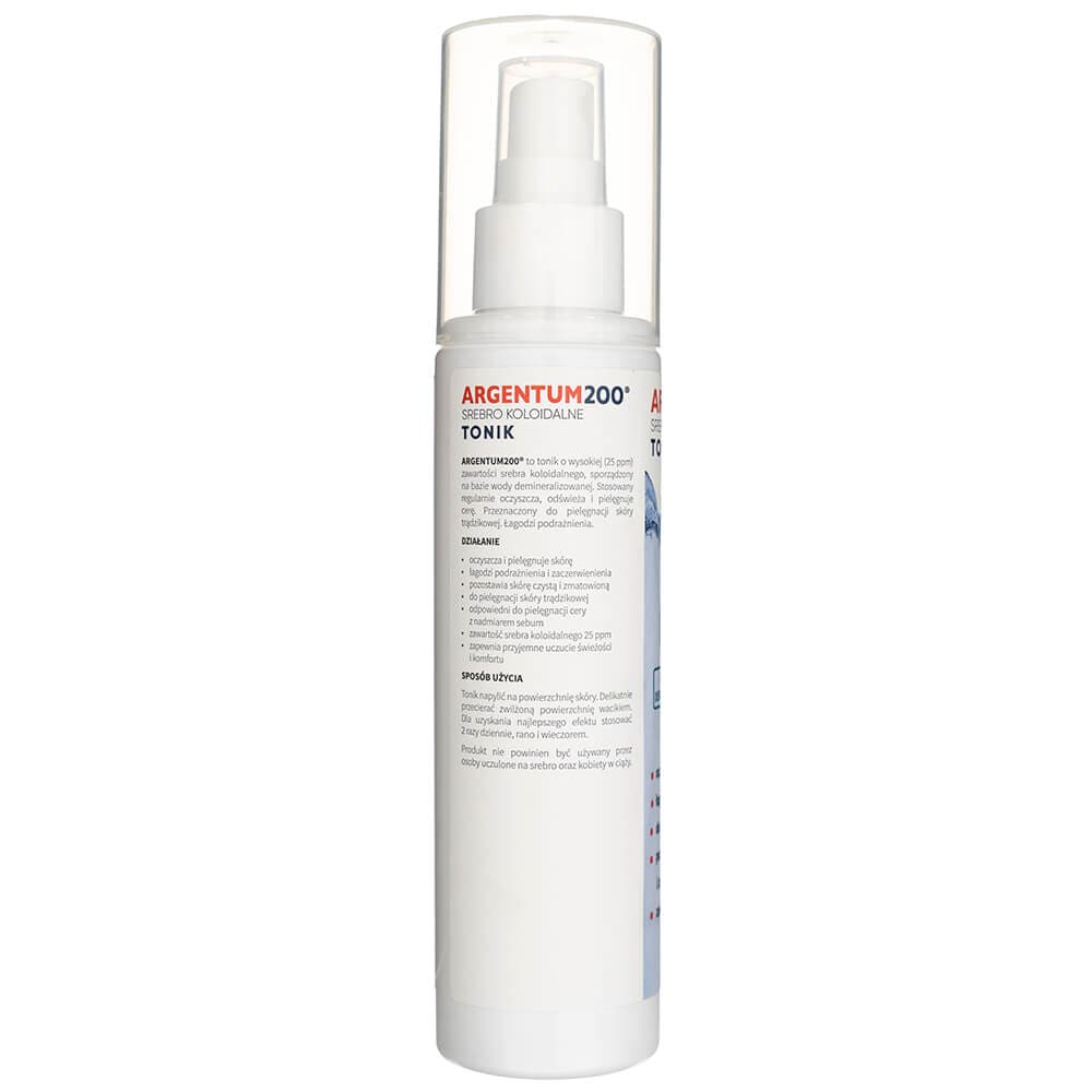 Argentum200 ® Colloïdaal Zilver is een tonicum met een hoog (50 ppm) gehalte aan colloïdaal zilver, bereid op basis van gedemineraliseerd water. Bij regelmatig gebruik, reinigt het, de huid en verzorgt deze. Het is bedoeld voor de verzorging van de acnegevoelige huid. Verzacht irritaties.