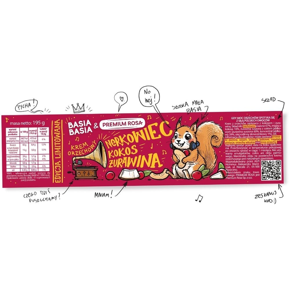 Alpi BasiaBasia Nut Cream is een zorgvuldig geselecteerde mix van geroosterde cashewnoten met een exotisch vleugje kokos en een lichtzure smaak van cranberry. Het hoge cashewgehalte (67%) garandeert een intense nootachtige smaak en rijke textuur. De afwezigheid van palmolie, kunstmatige kleurstoffen, conserveermiddelen en geraffineerde suiker maakt het een hoogwaardig en natuurlijk product.