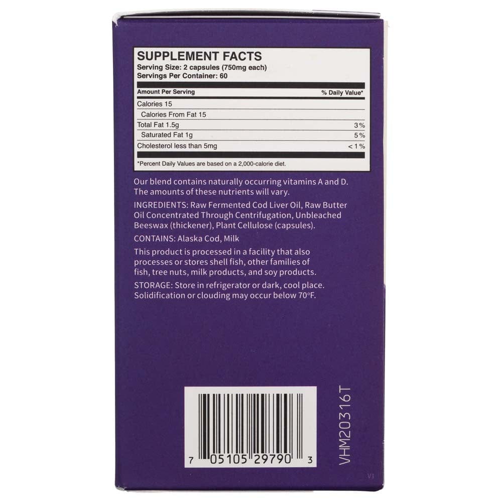 Dr. Weston A. Price ontdekte dat het combineren van levertraan met boterolie gunstiger was dan elk van beide afzonderlijk. In dit gemengde product hebben we deze voedingsrijke combinatie beschikbaar gemaakt in een eenvoudig in te nemen capsulevorm. Het is een mengsel van onze gefermenteerde levertraan en geconcentreerde boterolie.