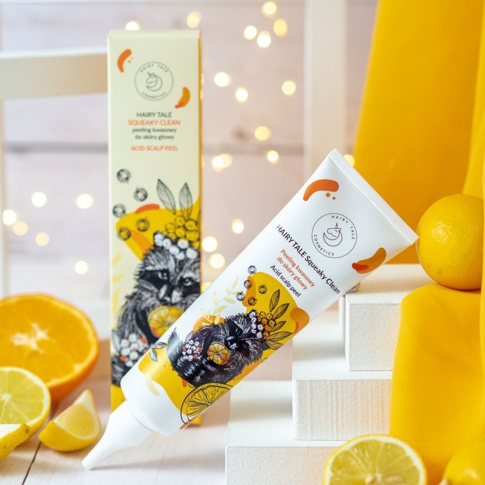 Hairy Tale Cosmetics Squeaky Clean is een speciale zure scrub voor de hoofdhuid die effectief huidophopingen, talg en resten van cosmetica en hard water verwijdert. De formule, op basis van een complex van wijnsteenzuur, melkzuur, glycolzuur en szikiminezuur, is uitgebalanceerd met acerola-extract met een hoog gehalte aan antioxidanten en een verzachtend inulinederivaat.