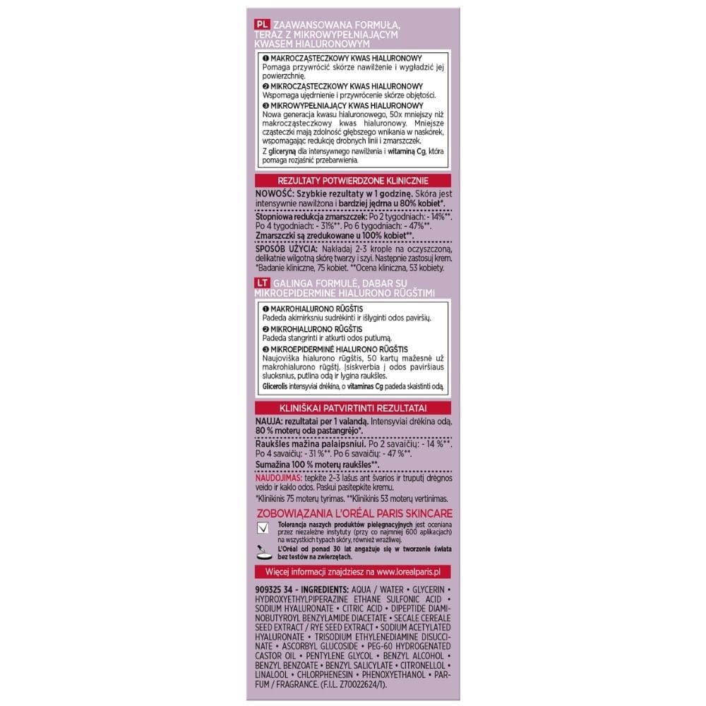 L'Oréal Paris Revitalift Filler Serum is een geconcentreerd gezichtsserum met drie soorten hyaluronzuur. Het product hydrateert de huid intensief, maakt rimpels glad en verbetert de stevigheid in slechts 1 uur na het aanbrengen. Geschikt voor alle huidtypes, inclusief de gevoelige huid.