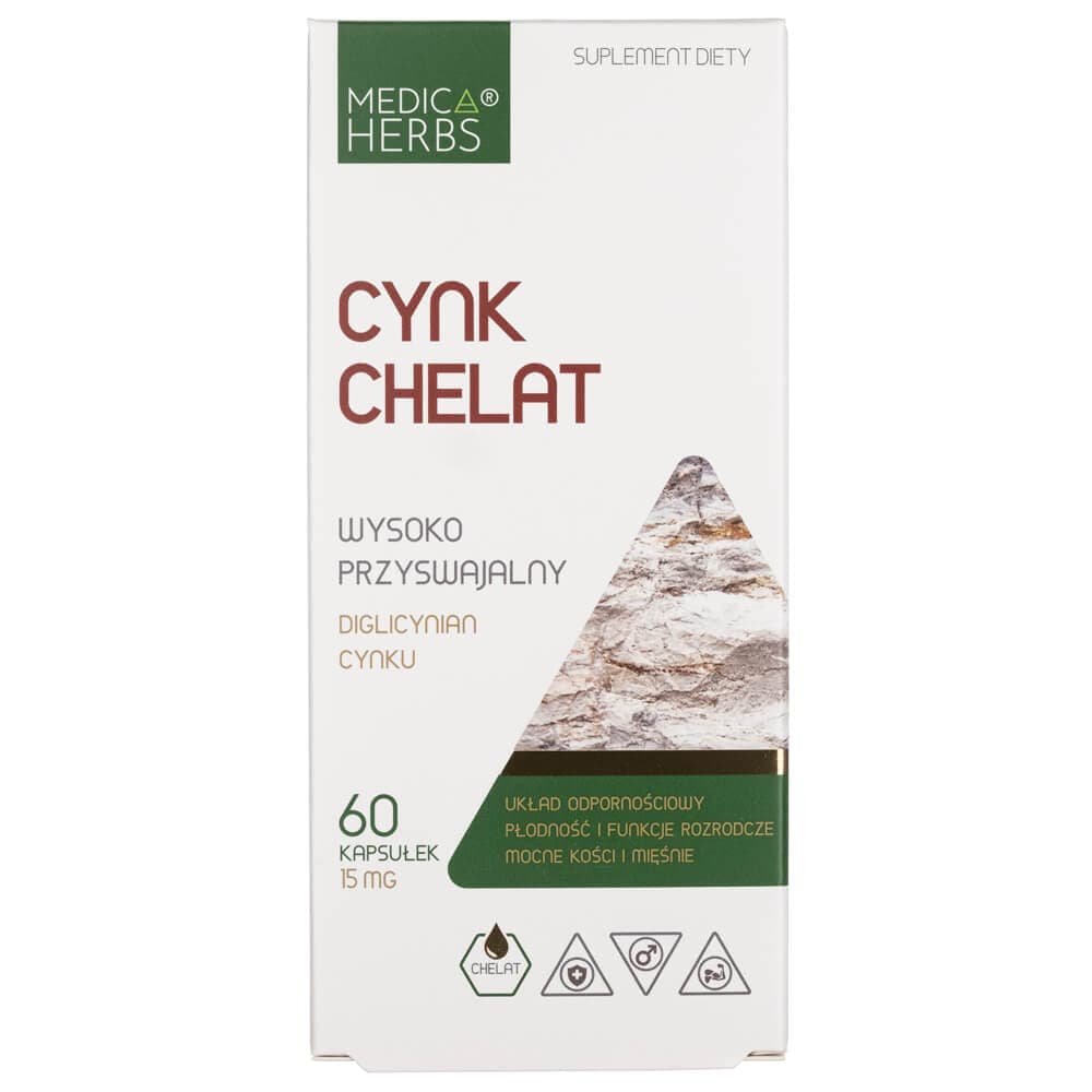 Zinkchelaat is een voedingssupplement in capsulevorm van Medica Herbs, dat zink diglycinaat bevat. Zink in chelaatvorm is goed opneembaar en wordt goed door het lichaam verdragen.
