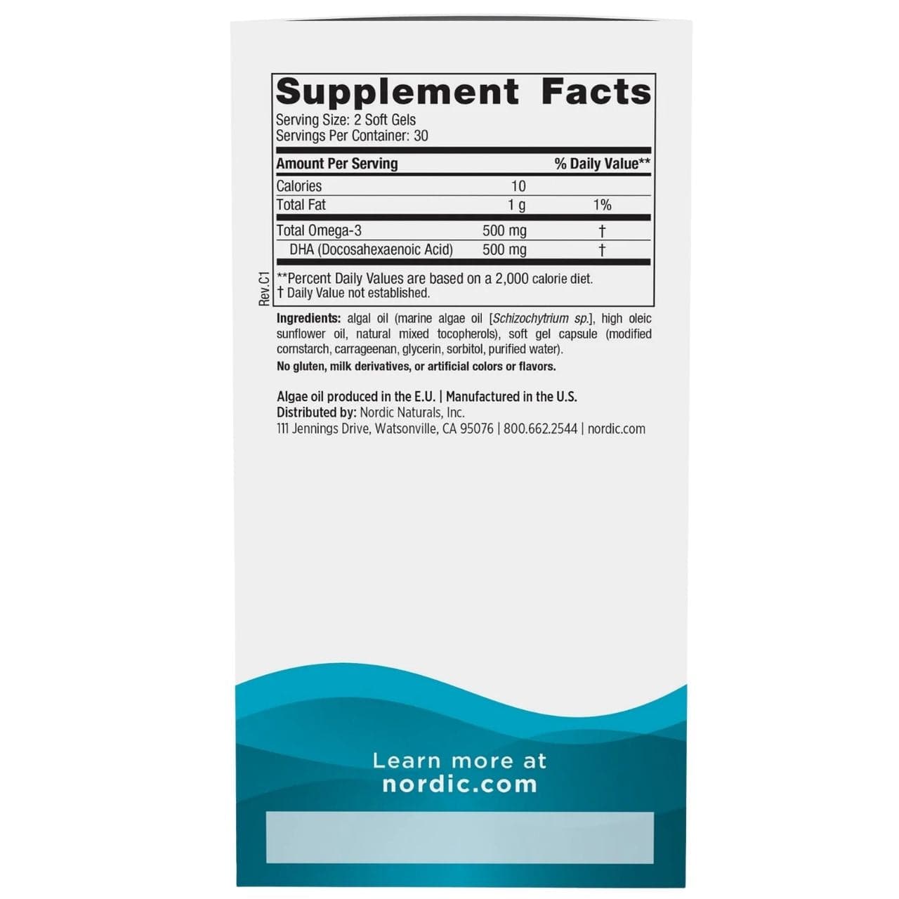 Nordic Naturals Algae DHA (Omega-3 van algen) 500 mg - 60 Capsules