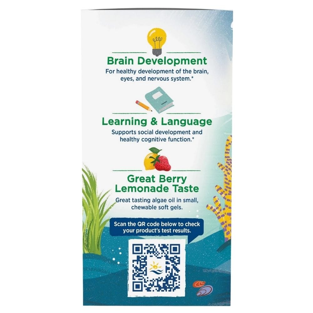 Het bevat omega-3 DHA uit microalgen, , dat de ontwikkeling van kinderen en de gezondheid van het immuunsysteem ondersteunt. Het levert 375 mg DHA per portie.