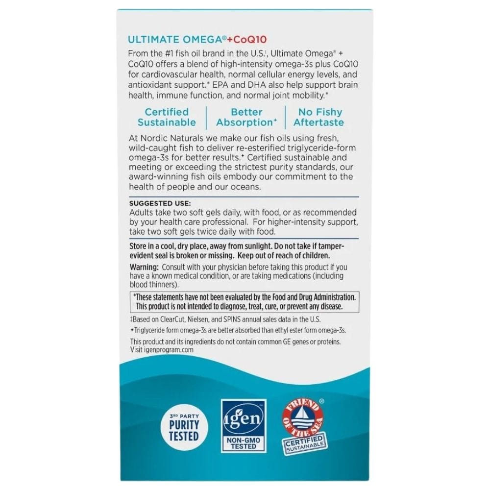Nordic Naturals Ultimate Omega + CoQ10 is een voedingssupplement in gelcapsules. Een bron van Omega-3 vetzuren met toevoeging van co-enzym Q10.