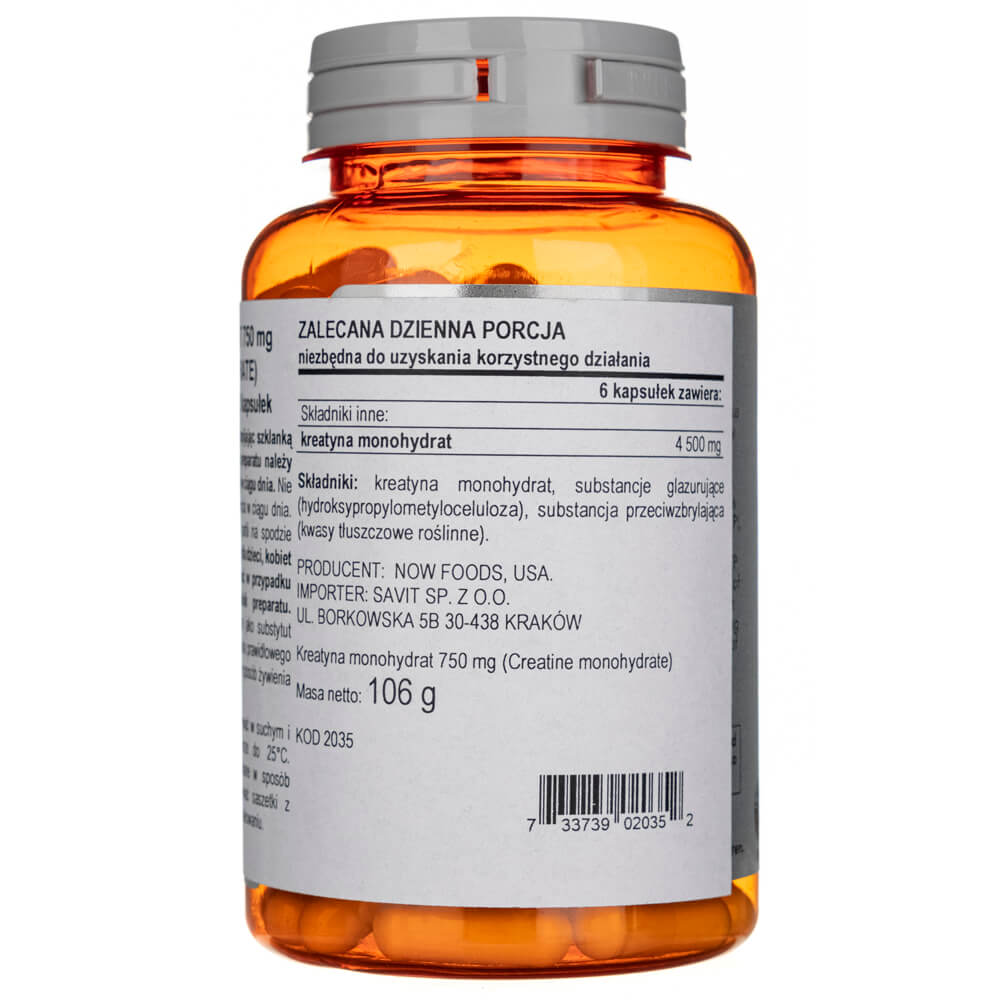 Now Foods Creatine monohydraat 750mg - 120 plantaardige capsules