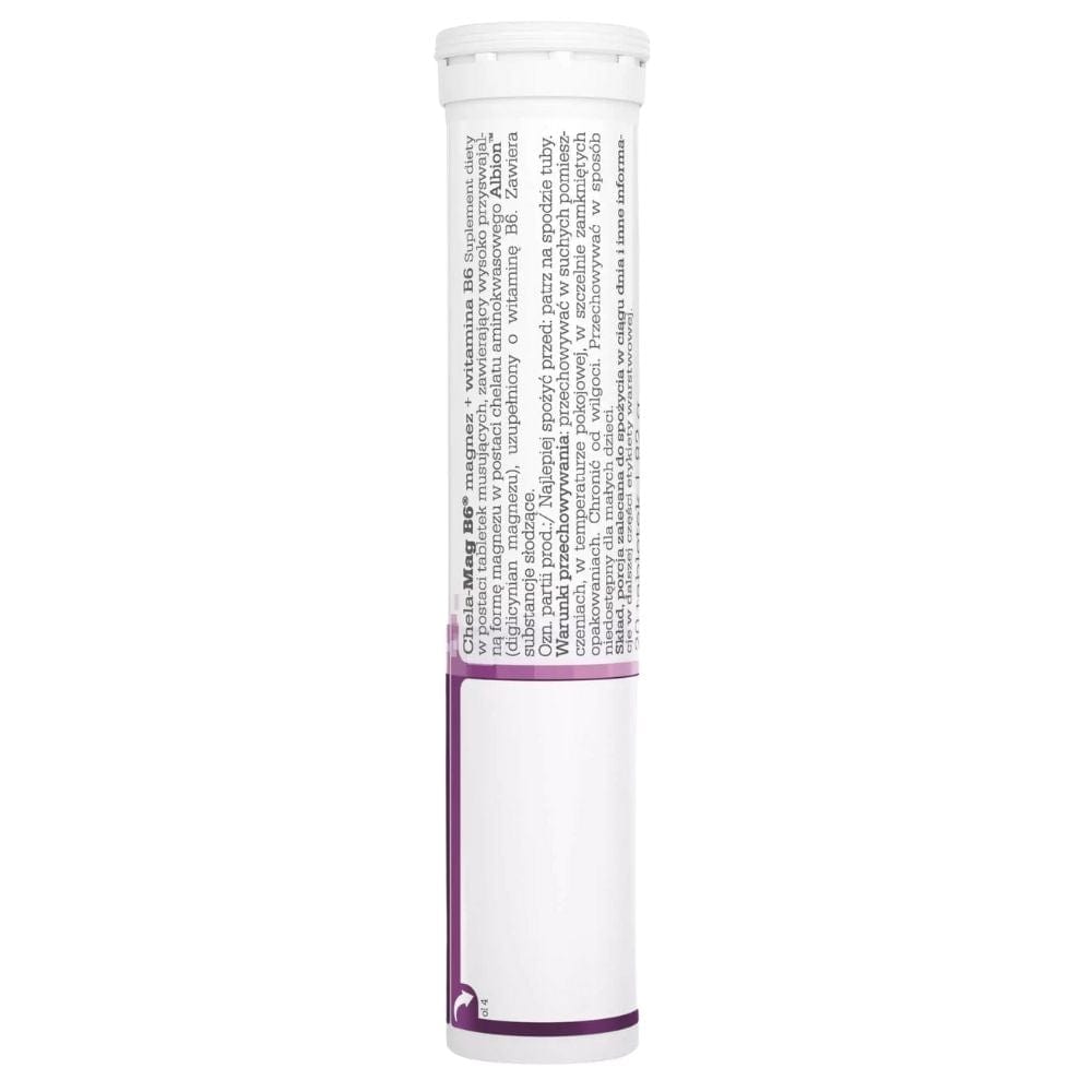 Olimp Chela-Mag B6 ® is een voedingssupplement in bruistabletten met sinaasappelsmaak . Het product helpt te voorzien in de dagelijkse behoefte aan magnesium en vitamine B6, die de goede werking van het zenuwstelsel, spieren ondersteunen en werken om vermoeidheid en moeheid te verminderen. Levert 100 mg magnesium in de goed opneembare aminozuurchelaatvorm van Albion™ (magnesium diglycinaat) en 2,1 mg vitamine B6 per portie.
