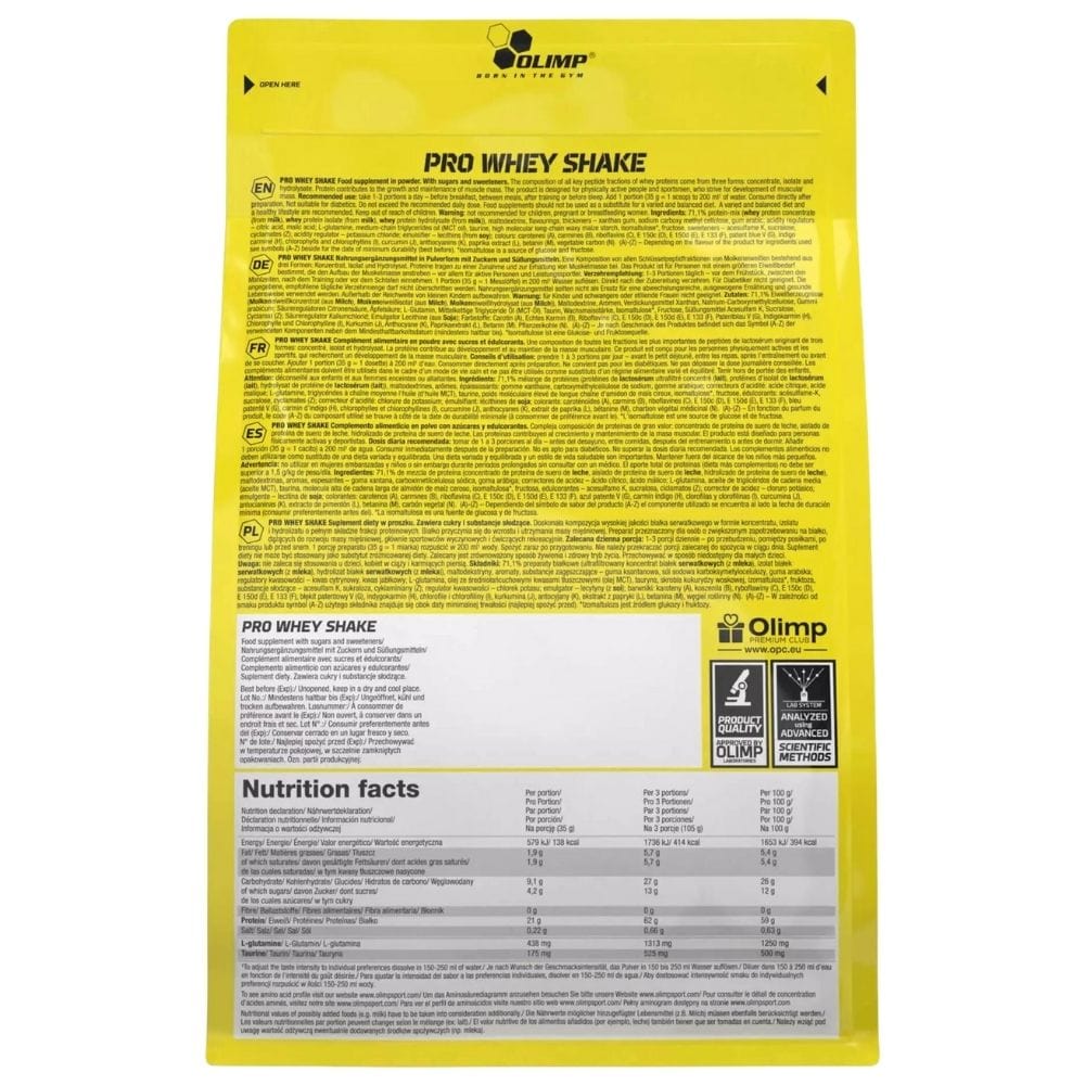 Olimp Pro Whey Shake is een voedingssupplement in poedervorm. Een eiwitsupplement gemaakt voor mensen met een verhoogde eiwitbehoefte die spiermassa willen ontwikkelen, voornamelijk professionele atleten en recreatieve sporters. Het combineert drie eiwitbronnen: hydrolysaat, isolaat en weiconcentraat.