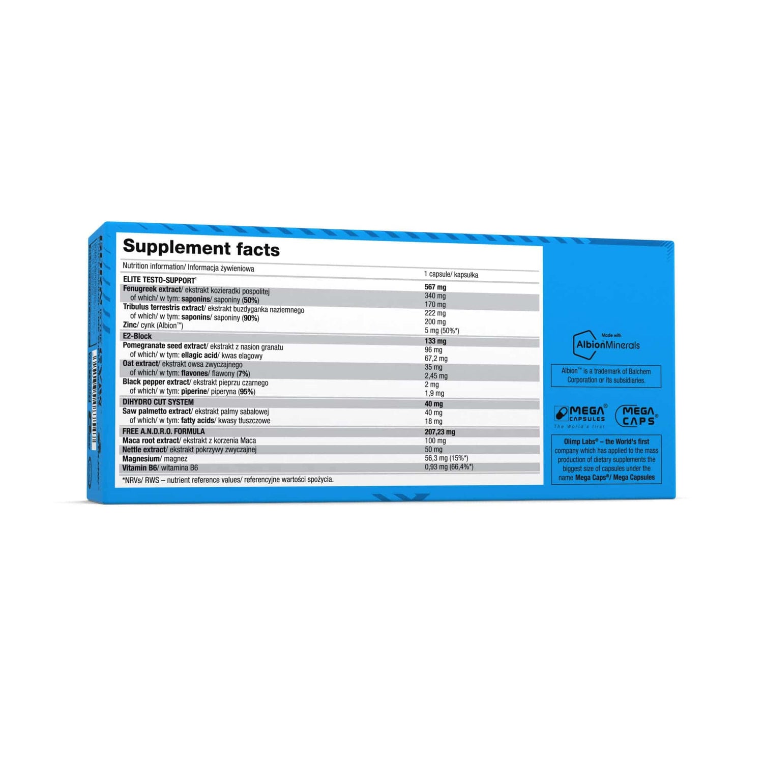 Olimp T-100 Hardcore Mega Caps is een voedingssupplement van Olimp Sport Nutrition. Het is een combinatie van hoogwaardige plantenextracten, zink, magnesium en vitamine B6. De afzonderlijke componenten zijn getest op de afwezigheid van zware metalen. De tests zijn uitgevoerd in het moderne onderzoeks- en ontwikkelingscentrum van het farmaceutische bedrijf Olimp Laboratories, en dienen als bewijs van de veiligheid van het voedingssupplement. Het product is ook vrij van stoffen die algemeen als illegale doping worden erkend!