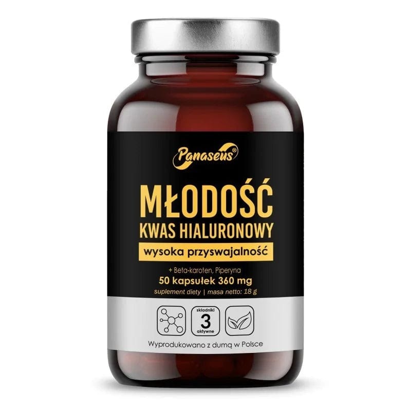 Het supplement Youth van Panaseus is een combinatie van hyaluronzuur met extra actieve ingrediënten. Hyaluronzuur is een stof die van nature voorkomt in de huid, ogen en gewrichten. De belangrijkste functie ervan is het vasthouden van water in de lichaamscellen, en daarom is het een van de belangrijkste bouwstenen van gewrichtsvloeistof en glasachtig kraakbeen.