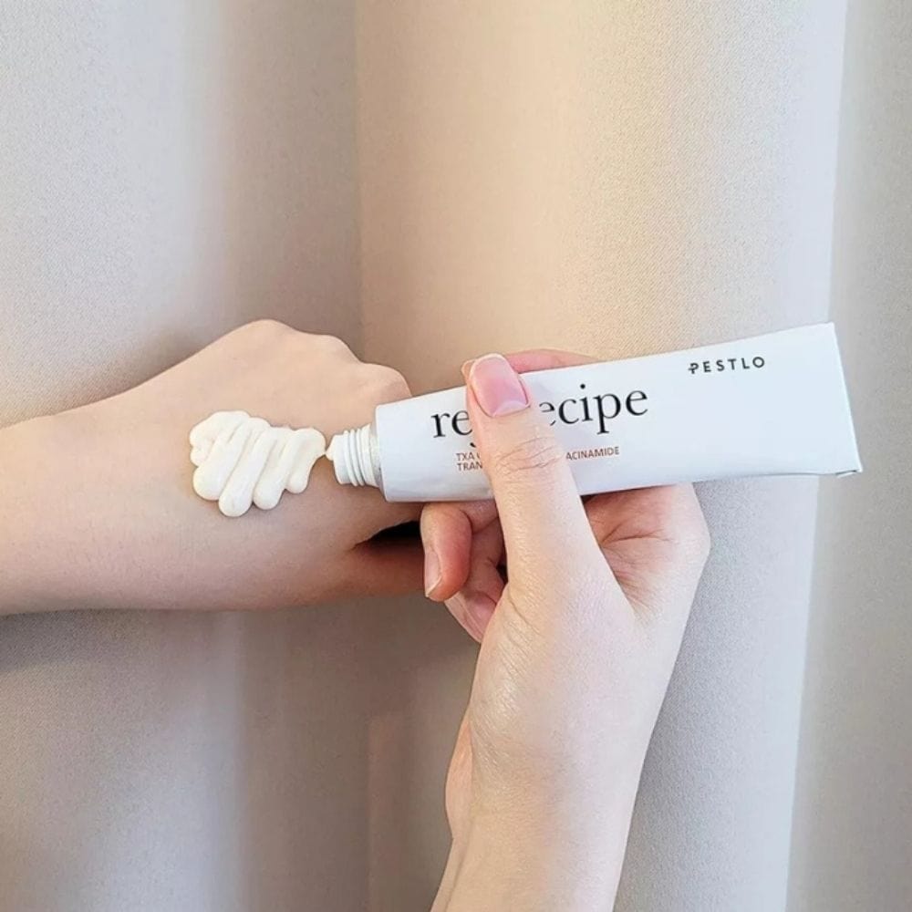 Pestlo Rejurecipe TXA Cream is een gespecialiseerd product dat is ontwikkeld om verkleuringen effectief te bestrijden. De crème bevat 2% tranexaminezuur (20,000 ppm), dat wordt beschouwd als een van de meest effectieve ingrediënten voor het verminderen van hyperpigmentatie.