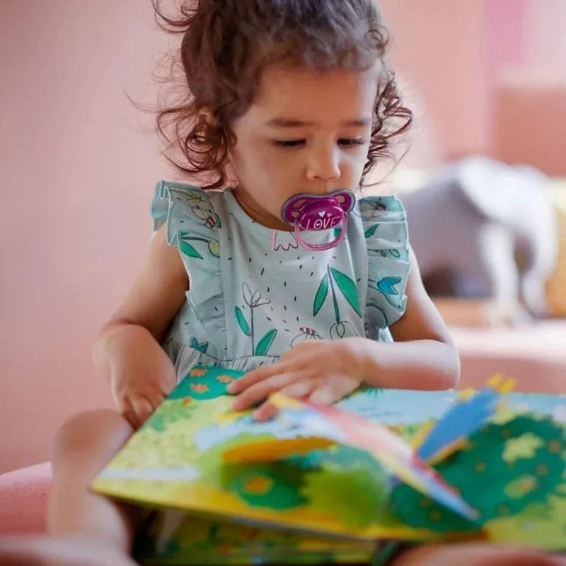 De stevige speen biedt comfort tijdens het doorkomen van de tandjes door de juiste hoeveelheid weerstand te bieden voor de zich ontwikkelende tandjes. Het orthodontische ontwerp ondersteunt de goede ontwikkeling van de mond. Gemaakt van 100% food-grade siliconen , vrij van BPA en andere schadelijke stoffen. Wordt geleverd met een praktisch etui voor sterilisatie in de magnetron .