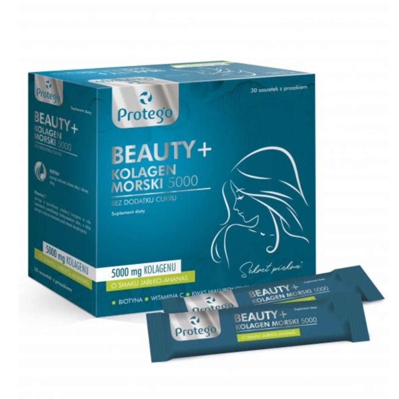 Protego BEAUTY + Marine Collagen 5000 is een voedingssupplement in poedervorm in handige zakjes. Eén zakje bevat maar liefst 5,000 mg collageen, vitamine C, hyaluronzuur en biotine.