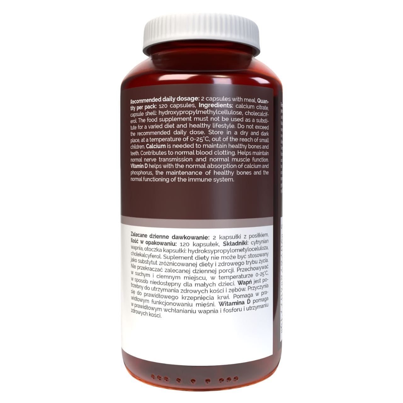 Calciumcitraat, capsulehuls (hydroxypropylmethylcellulose), cholecalciferol (vitamine D3 uit lanoline).
