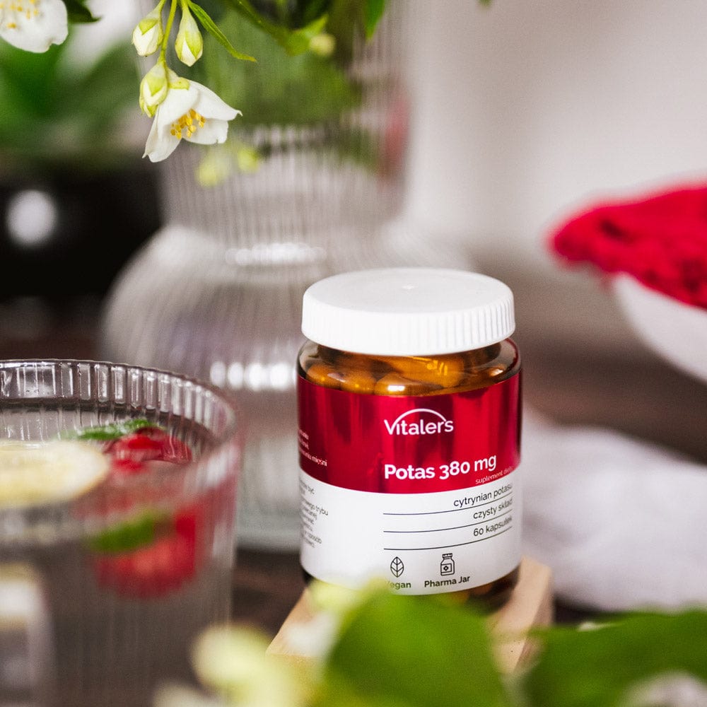 Kalium is een waardevol micronutriënt en elektrolyt dat het lichaam reguleert. Vitaler's Kalium 380 mg bevat hoogwaardig kalium in de vorm van citraat , dat een zeer goede biologische beschikbaarheid heeft.